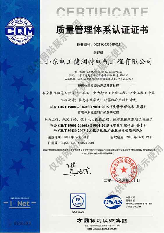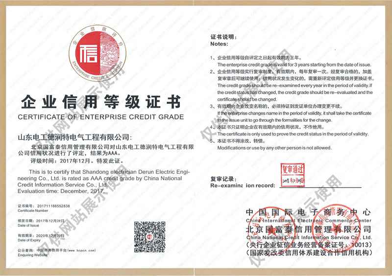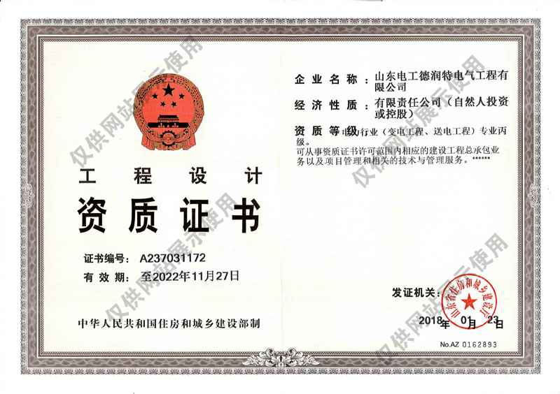 具有电力工程总承包三级,承装三级,电力行业专业设计丙级,信息系统集成三级,城市及道路照明工程专业承包三级,电子与智能化专业承包